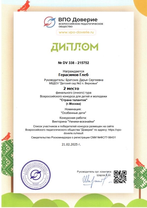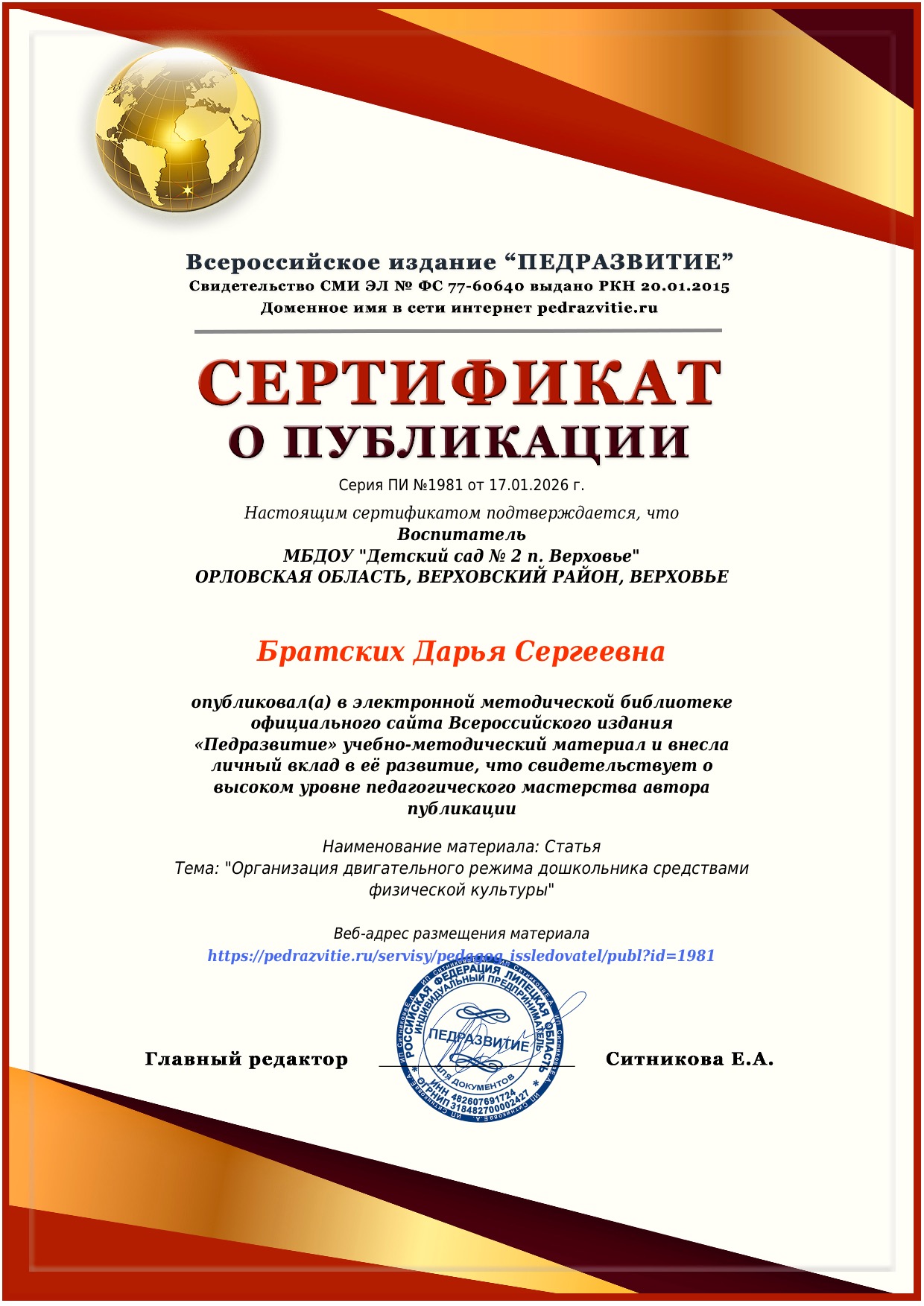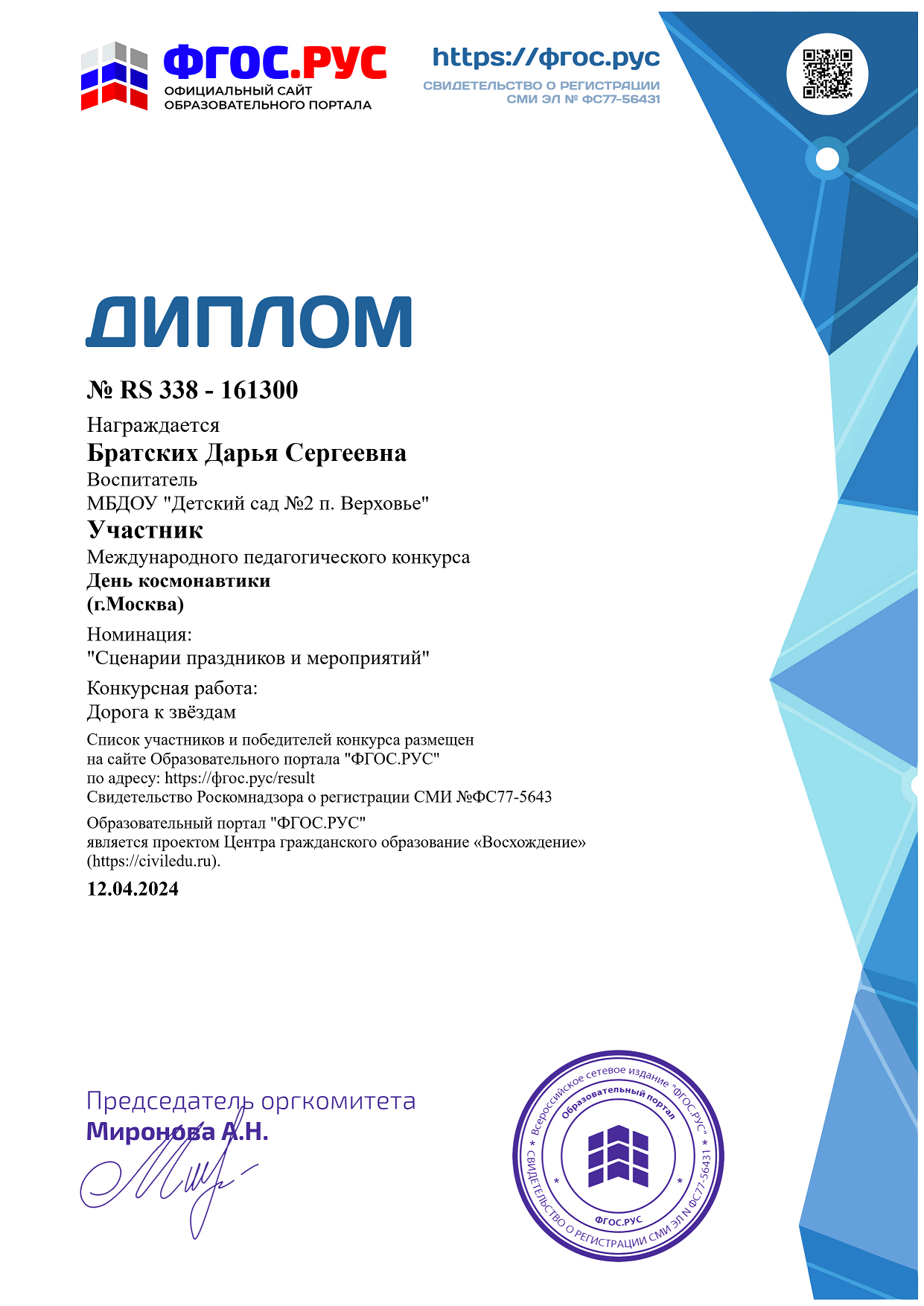 Личная интернет-страница участника муниципального этапа Всероссийского профессионального конкурса "Воспитатель года России" в 2026 году в Верховском районе