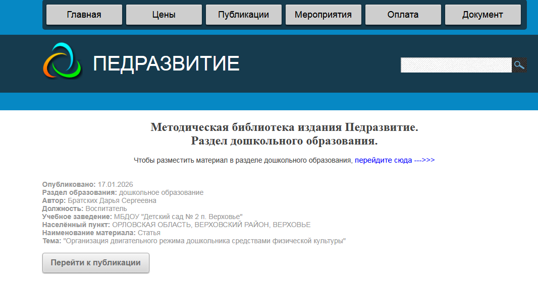 Личная интернет-страница участника муниципального этапа Всероссийского профессионального конкурса "Воспитатель года России" в 2026 году в Верховском районе
