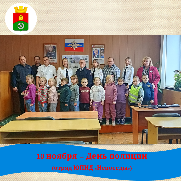 10 ноября в нашей стране отмечается День полиции. В этот день воспитанники отряда ЮПИД «Непоседы» подготовили поздравительную стенгазету и отправились на экскурсию в отдел МВД России по Верховскому району. У дверей здания воспитанников радушно встретили начальник ОМВД России по Верховскому району, подполковник полиции Третьяков Сергей Александрович, специалисты по работе с личным составом ОМВД. Они рассказали о трудностях, большой ответственности и престиже профессии полицейского. Сотрудники полиции продемонстрировали юным гостям чемоданчик эксперта криминалиста, с которым они выезжают на происшествия. Объяснили, как обнаружить отпечатки пальцев на предмете. Показали вооружение, которым экипируется полицейский, выходя на свое дежурство, защищая жизнь гражданина, а также показали и разрешили примерить спецодежду. Дети остались, очень довольны, когда им надели каску, бронежилет. Кроме того детей познакомили с устройством полицейского автомобиля, разрешили также посидеть в машине, нажать на звуковой сигнал. Особенно понравилась ребятам встреча с кинологом и его подопечным. С какого возраста можно дрессировать собаку, каким приемам нужно обучить животное в первую очередь, как кормят собак – все это интересовало ребят. Юные экскурсанты задавали вопросы и получали исчерпывающие ответы. Затем дружно поблагодарили полицейских за экскурсию и с горящими глазами отправились в детский сад.
