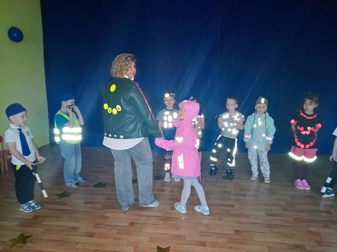 В завершении дети продемонстрировали показ мод со светоотражающими элементами.