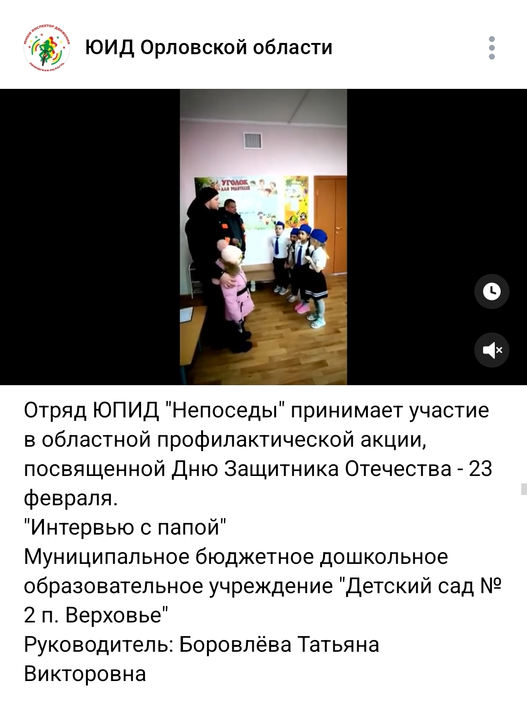 Отряд ЮПИД «Непоседы» МБДОУ «Детский сад № 2 п.Верховье» принимал участие в областной профилактической акции , посвященной Дню Защитника Отечества- 23 февраля.