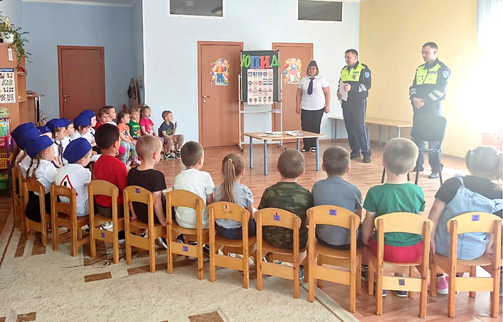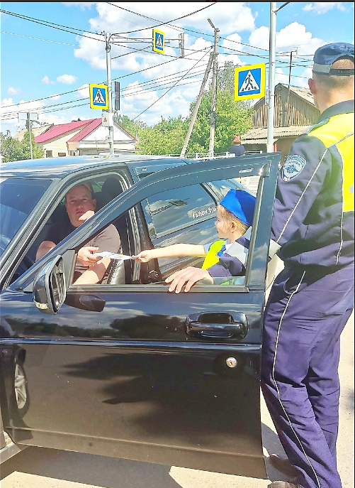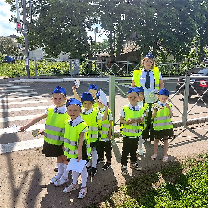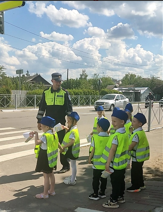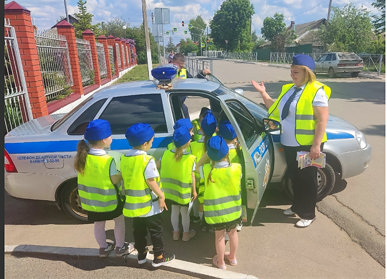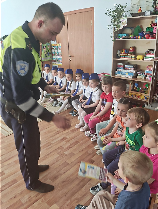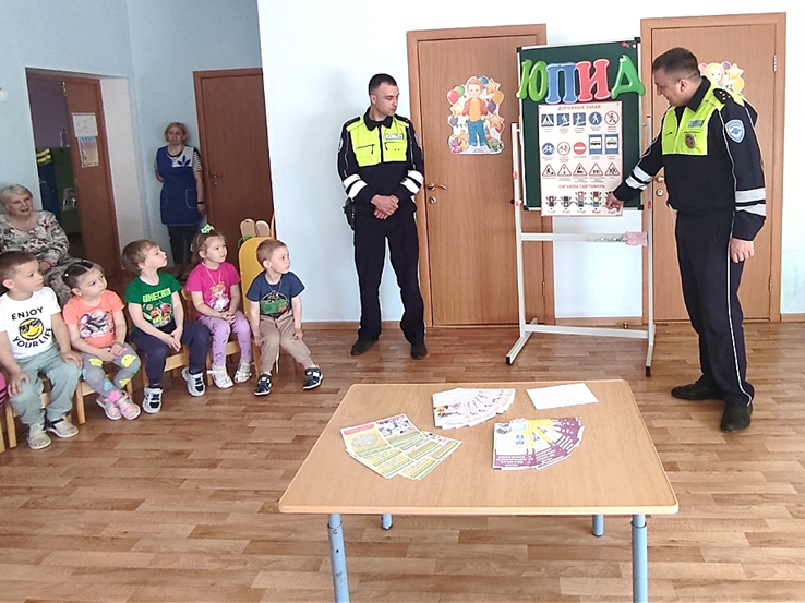 23 мая в предддверии Дня пропаганды Госавтоинспекции МВД России в детском саду прошло мероприятие "Один деньс инспектором по пропаганде".Начальник отделения ГАИ капитан полиции Сметанин А.П. провел с детьми беседу о необходимости соблюдения ПДД. Старший лейтенант Докукин А.А. рассказал о правилах передвижения на велосипедах и самокатах, а также раздал детям красочные буклеты о ПДД. В свою очередь отряд ЮПИД "Непоседы" рассказали девиз и речевку. Затем ЮПИДовцы вместе с инспектором и руководителем вышли на улицу и раздали листовки и буклеты прохожим.