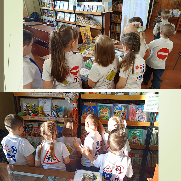 Сотрудники библиотеки радушно встретили ребят. Вместе с работниками библиотеки ребята отправились в путешествие «В страну дорожных знаков». Они напомнили воспитанникам, правила дорожного движения, рассказали о знаках дорожного движения, провели викторину и показали мультфильм. Ребят познакомили с книгами о правилах дорожного движения. Ребята отряда ЮПИД «Непоседы» с удовольствием поделились своими знаниями. В заключение ребята полистали детские книжки о правилах дорожного движения. В заключении всем были вручены знаки «Знаток дорожного движения». Эта познавательная экскурсия стала конкретным примером социального партнёрства, плодотворного сотрудничества дошкольного учреждения с библиотекой. Наверняка многие из детей воспользуются приглашением стать читателями библиотеки и вернутся сюда со своими родителями.