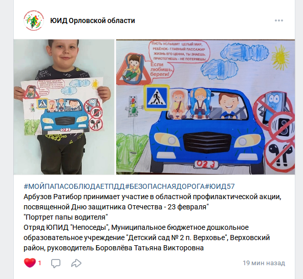 В сентябре в рамках акции в #ВШКОЛУБЕЗДТП родительский патруль и члены отряда ЮПИД «Непоседы» МБДОУ «Детский сад № 2 п.Верховье» вместе с сотрудниками Госавтоинспекции УМВД России по Верховскому району лейтенантом полиции Хвальковой Е.А., старшим лейтенантом Пряжниковым И.А.провели первое в этом учебном году профилактическое мероприятие с раздачей родителям памяток о светоотражателях, напомнили об использовании детских удерживающих устройств при передвижении в автомобиле и соблюдении ПДД. В группе актуализирована информация в уголках безопасности и родительском.