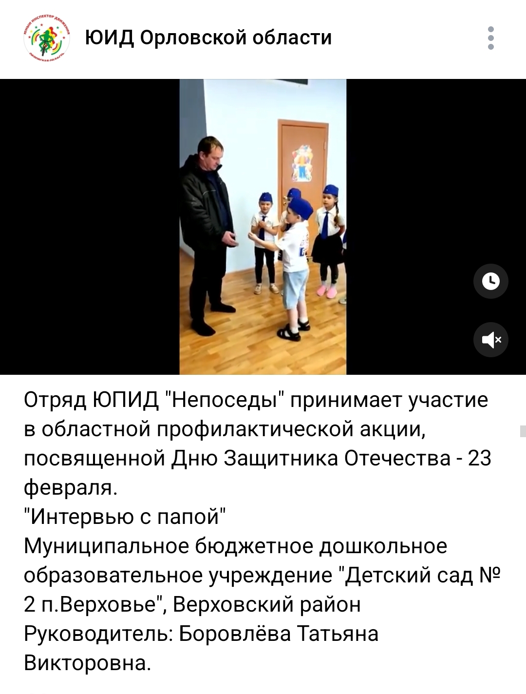 Отряд ЮПИД «Непоседы» МБДОУ «Детский сад № 2 п.Верховье» принимал участие в областной профилактической акции , посвященной Дню Защитника Отечества- 23 февраля.