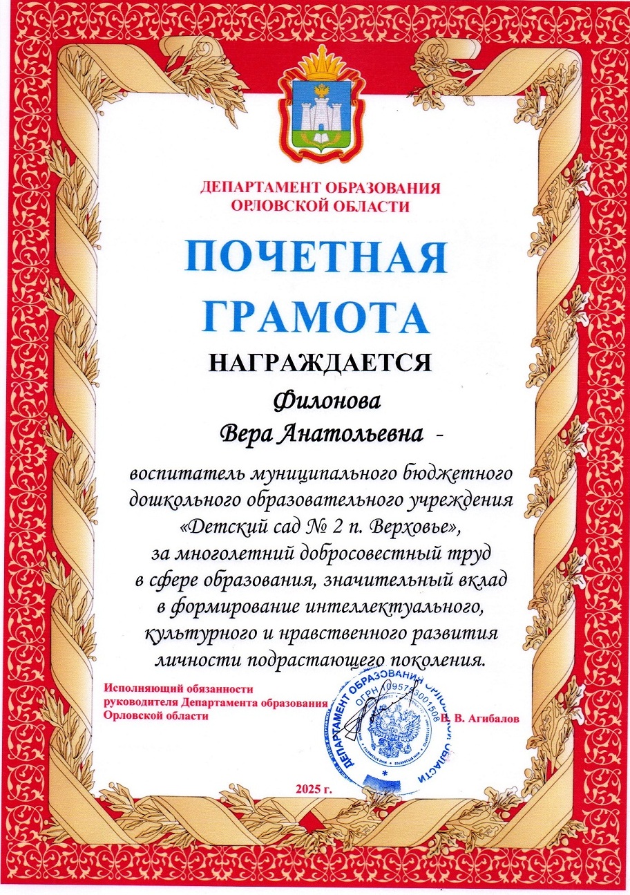Грамоты Министерства Просвещения, Департамента образования Орловской области