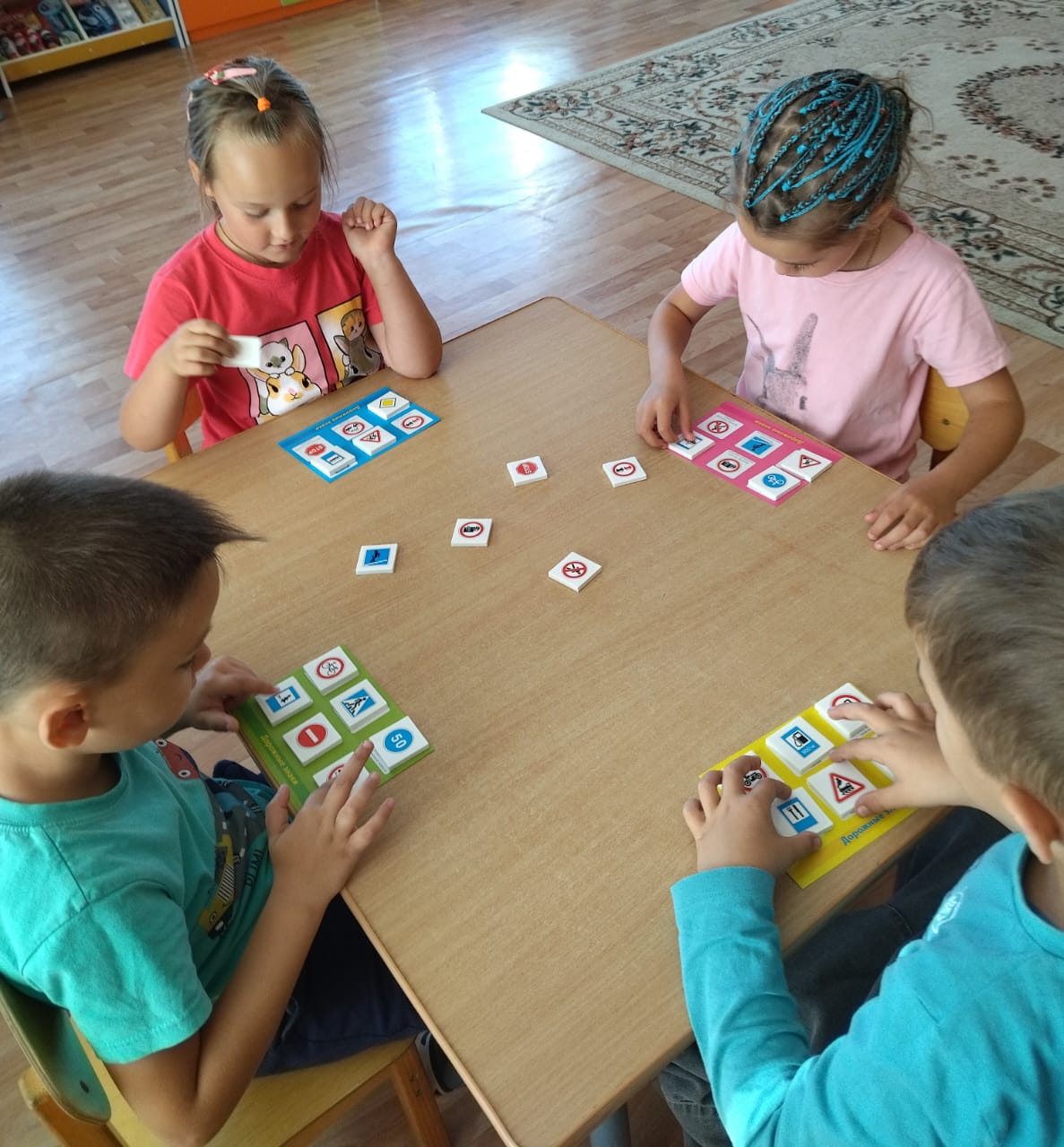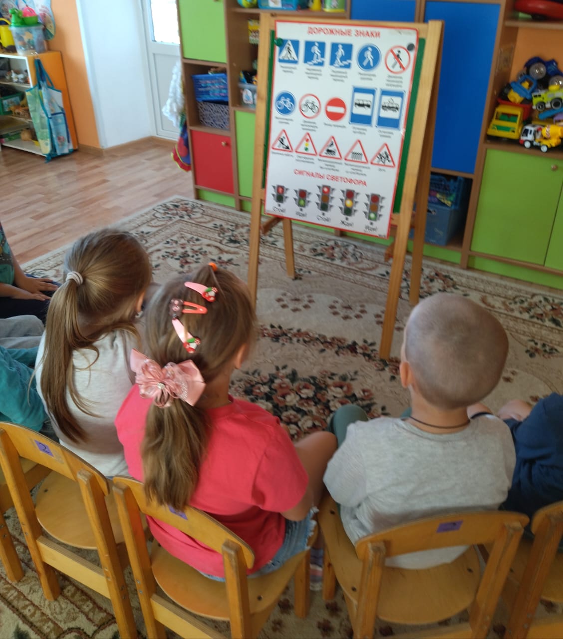 Каждое утро начиналось с "Минутки безопасности". В течение этого времени с детьми проведены тематические беседы о правилах дорожного движения: "Правила поведения на дороге, в транспорте, на улице", "Чтобы не случилось беды", "Безопасность на улице", "Дорожные знаки", "Транспортные средства" и др. Прочитаны литературные произведения (Дружинина М. "Наш друг светофор", "Правила поведения на улице", Иванов А. "Азбука безопасности", Кривицкая А. "Тайны дорожных знаков" Р. Фархади "У любого перекрестка нас встречает светофор"). Внимательно рассмотрены и проанализированы сюжетные картинки "Правила и безопасность дорожного движения". Использовали дидактические игры: "Зажги светофор", "Назови правильно дорожный знак", "Можно, нельзя", играли в подвижную игру "Красный, жёлтый, зелёный!" Свои знания дети закрепили в продуктивной деятельности: "Моя улица", "Пешеходный переход, "Светофор". Дети играли в подвижные, сюжетно-ролевые и словесные игры, учили стихи и разгадывали загадки, рассматривали иллюстрации, обсуждали ситуации и смотрели презентации.
