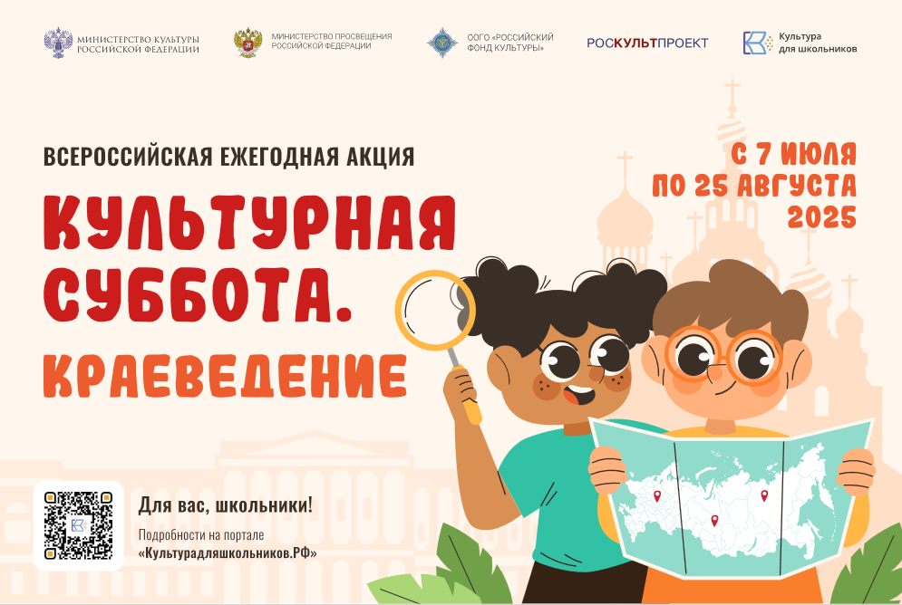 7 июля в рамках межведомственного культурно-образовательного проекта «Культура для школьников» стартует всероссийская ежегодная акция «Культурная суббота. Краеведение», направленная на популяризацию традиций народов России.
