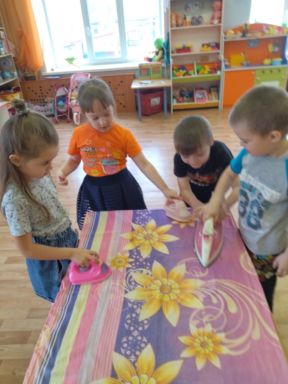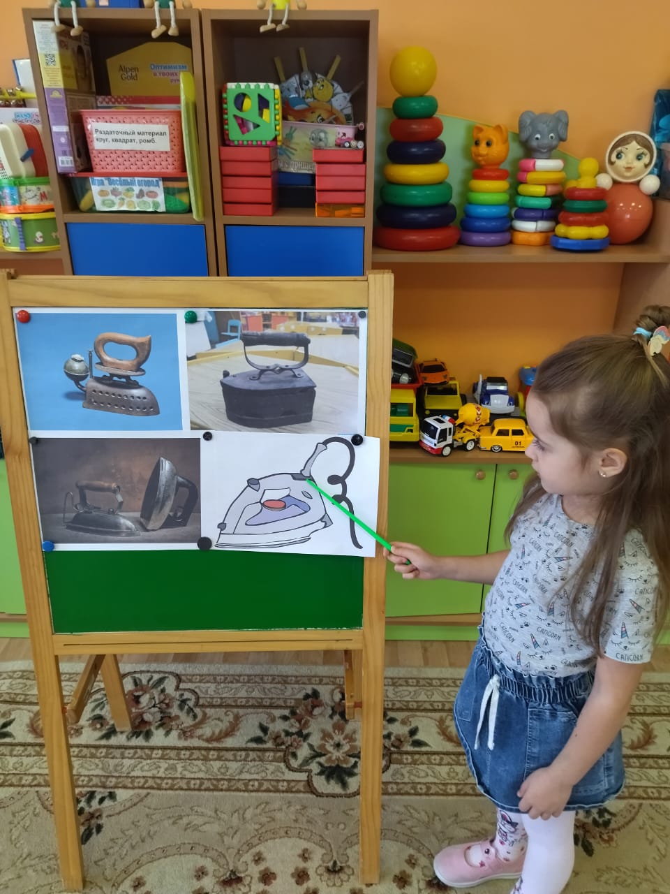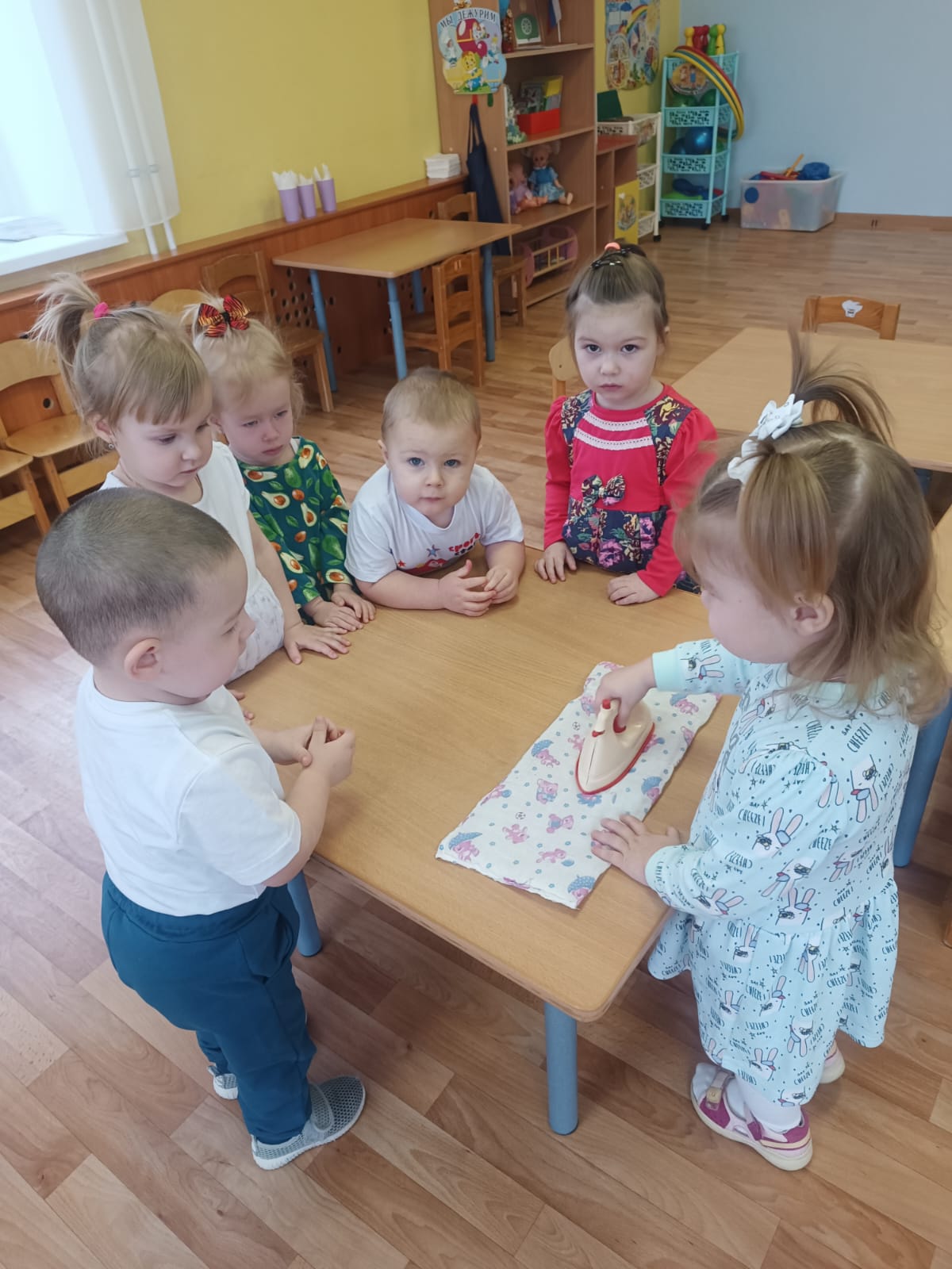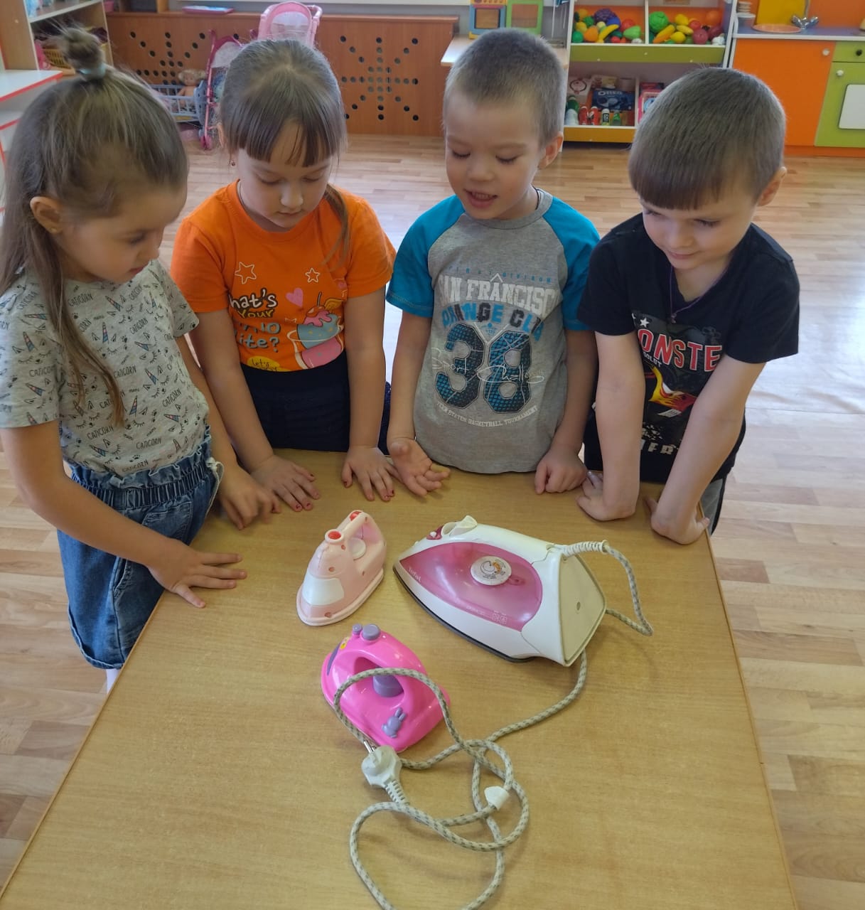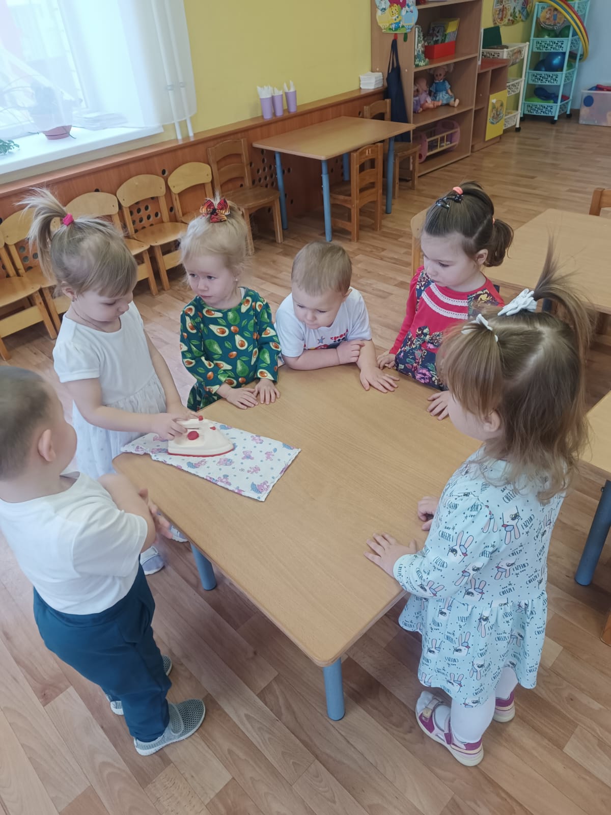 А в день рождения каждый именинник ждет поздравлений, гостей, организует праздничные угощения, наводит порядок и, несомненно, мечтает о прекрасном будущем. На таком необычном Дне рождения с удовольствием побывали дети и педагоги дошкольного отделения. Во время познавательной беседы дети узнали, как и чем раньше люди гладили одежду и белье; какими были первые углевые, чугунные утюги: это были увесистые металлические предметы. Рассмотрели и современный утюг, обсудили, для чего он нужен людям. Оказалось, он и гладит, и отпаривает, и смачивает одежду, даже очищается сам.