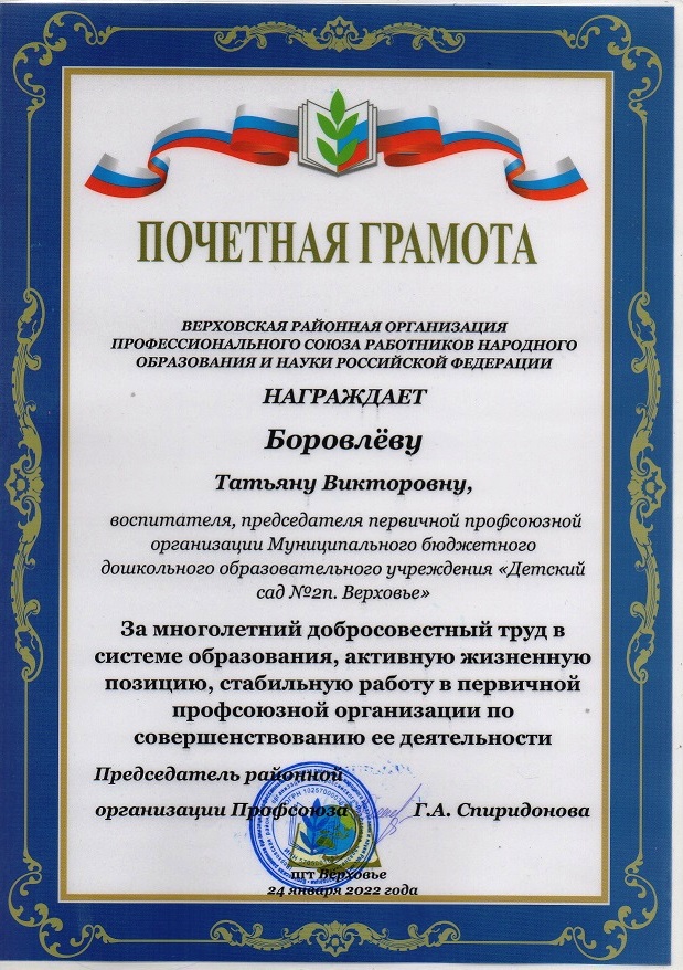 БОРОВЛЕВА ТАТЬЯНА ВИКТОРОВНА- председатель первичной профсоюзной организации ДОУ