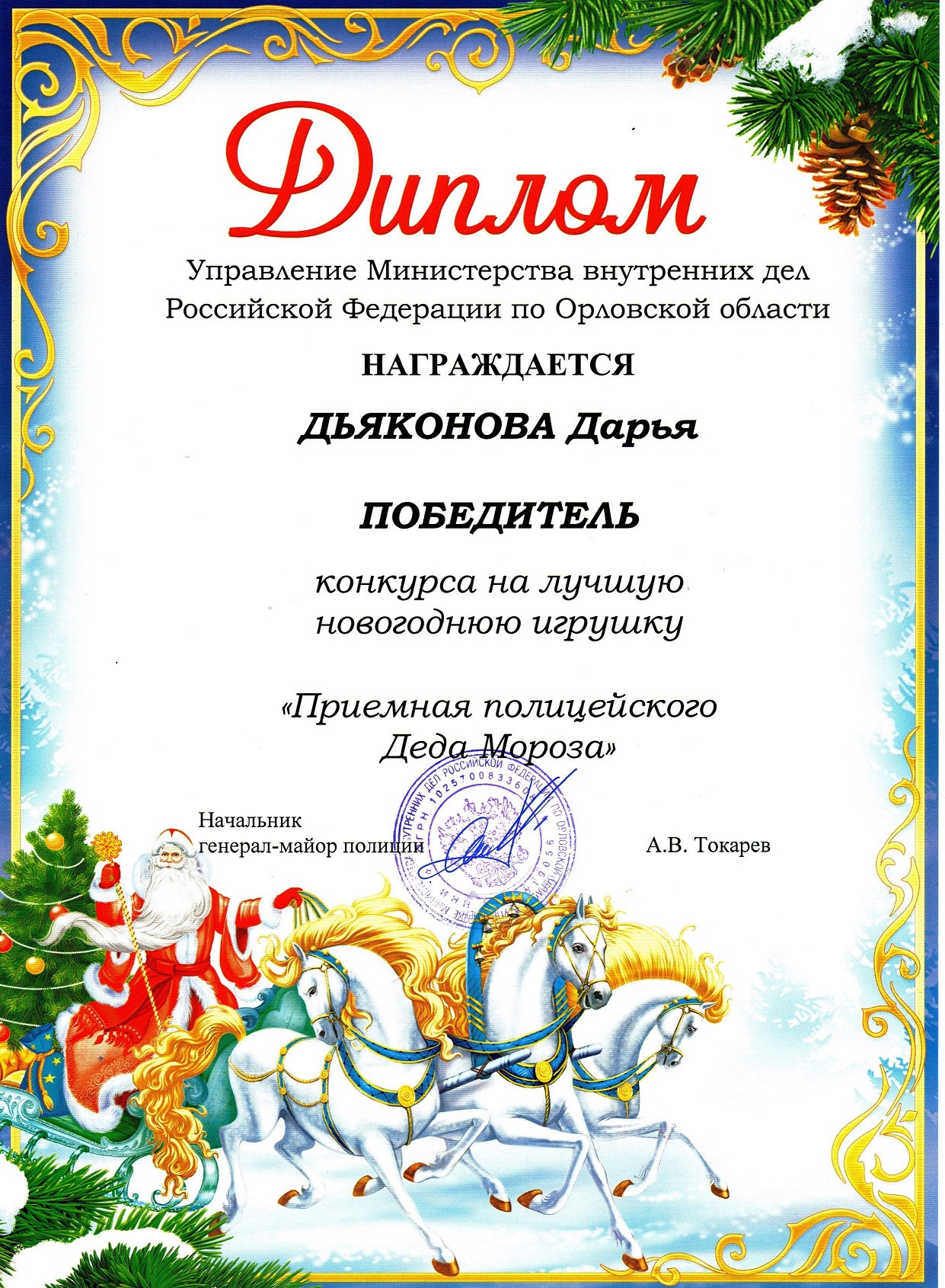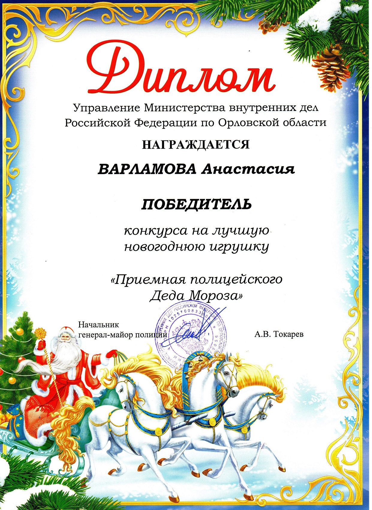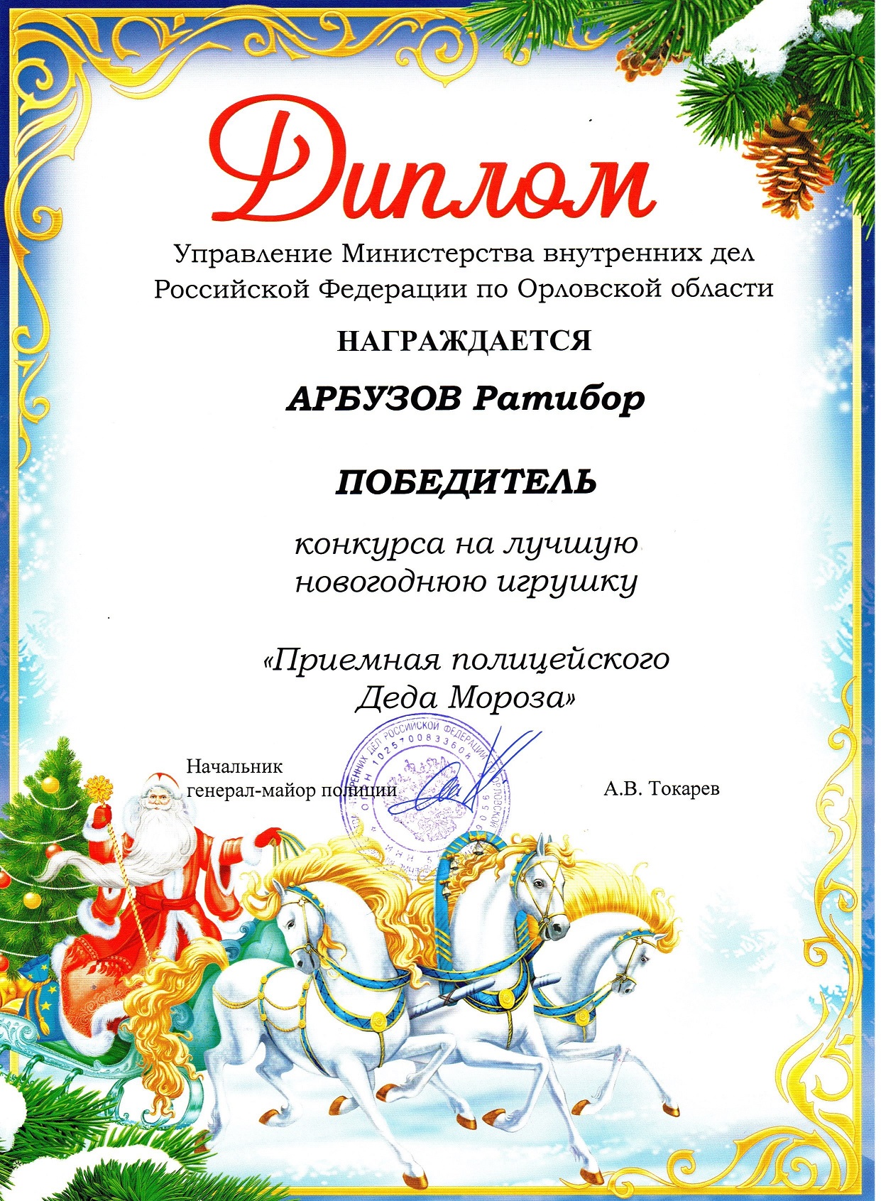 Областной творческий конкурс на лучшую новогоднюю игрушку "Приемная полицейского Деда Мороза" (Управление Министерства внутренних дел Российской Федерации по Орловской области ) - декабрь 2025 г