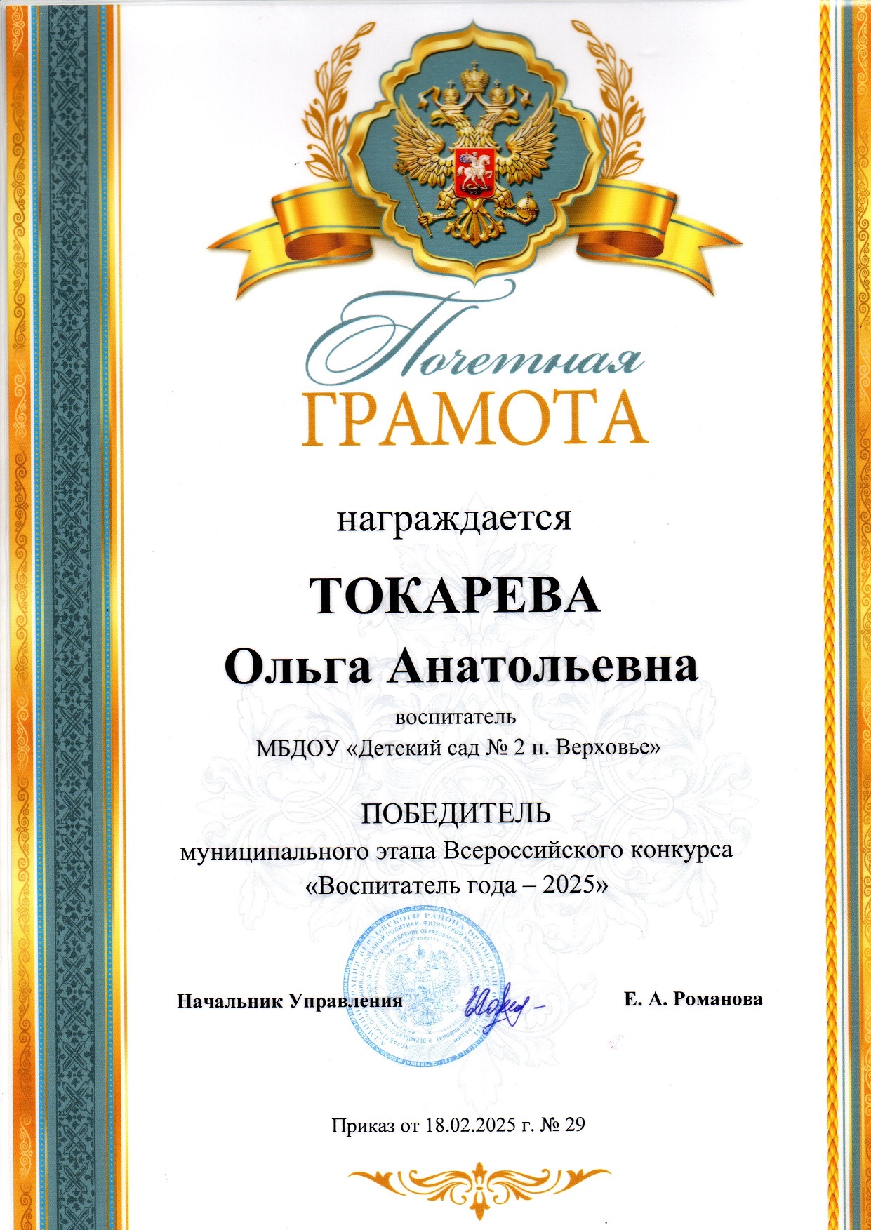 Грамоты Главы Верховского района, Управления образования Верховского района